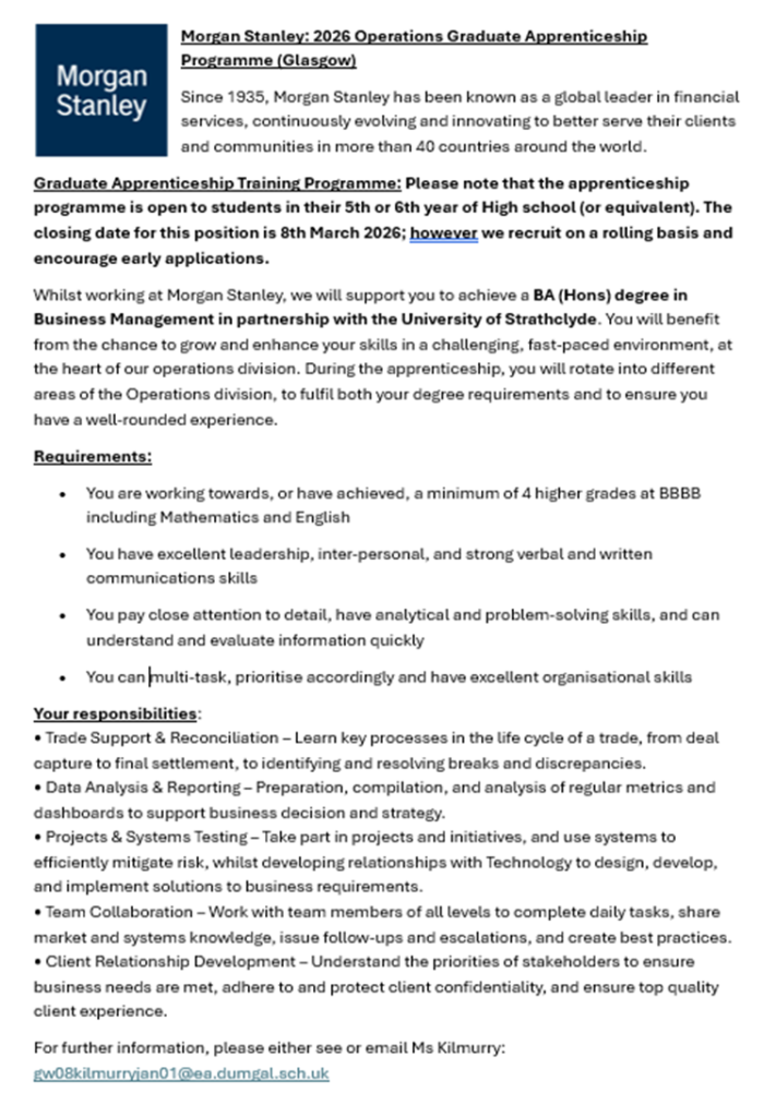 Morgan Stanley: 2026 Operations Graduate Apprenticeship Programme (Glasgow)